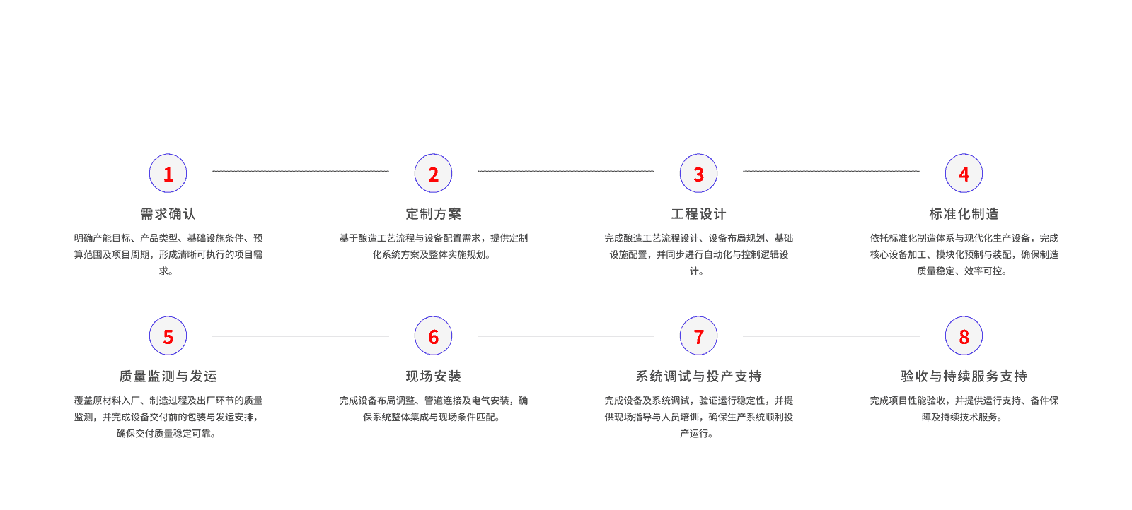 公司具备从工程规划、系统设计、装备制造到安装调试与售后服务的完整能力,长期服务于啤酒及食品饮料行业,形成以质量保障、供应链能力、高效交付与本地化服务为核心的综合竞争优势。